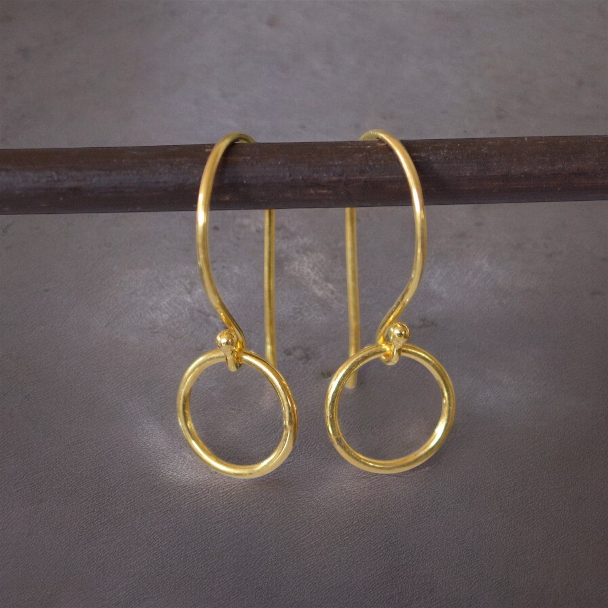 Beautiful minimalist 24k gold vermeil circle earrings. Vermeil is a thick coat of 24 karat gold on solid sterling silver. These earrings would make a perfect gift for any occasion.