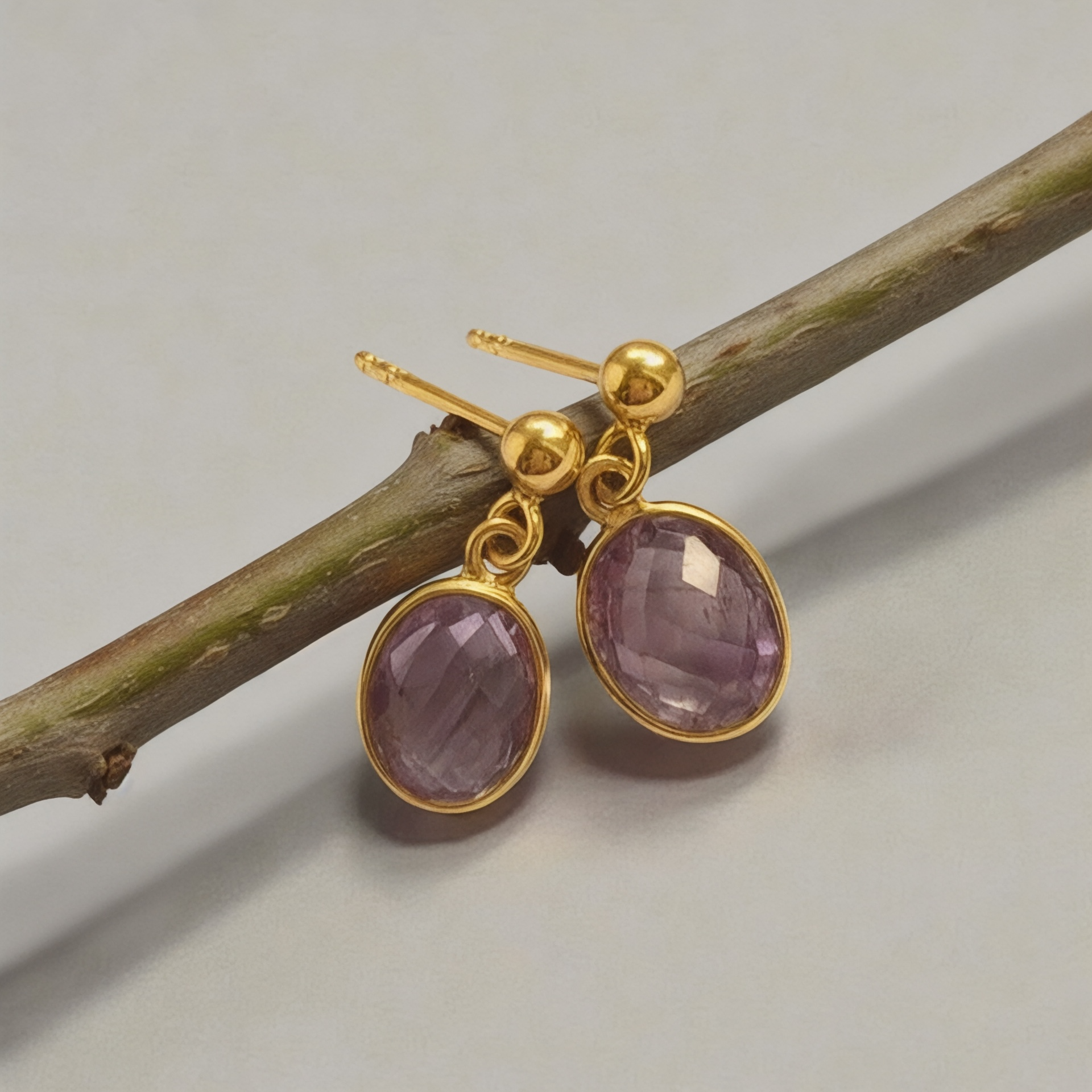 Amethyst 24k gold vermeil stud earrings. February birthstone earrings.