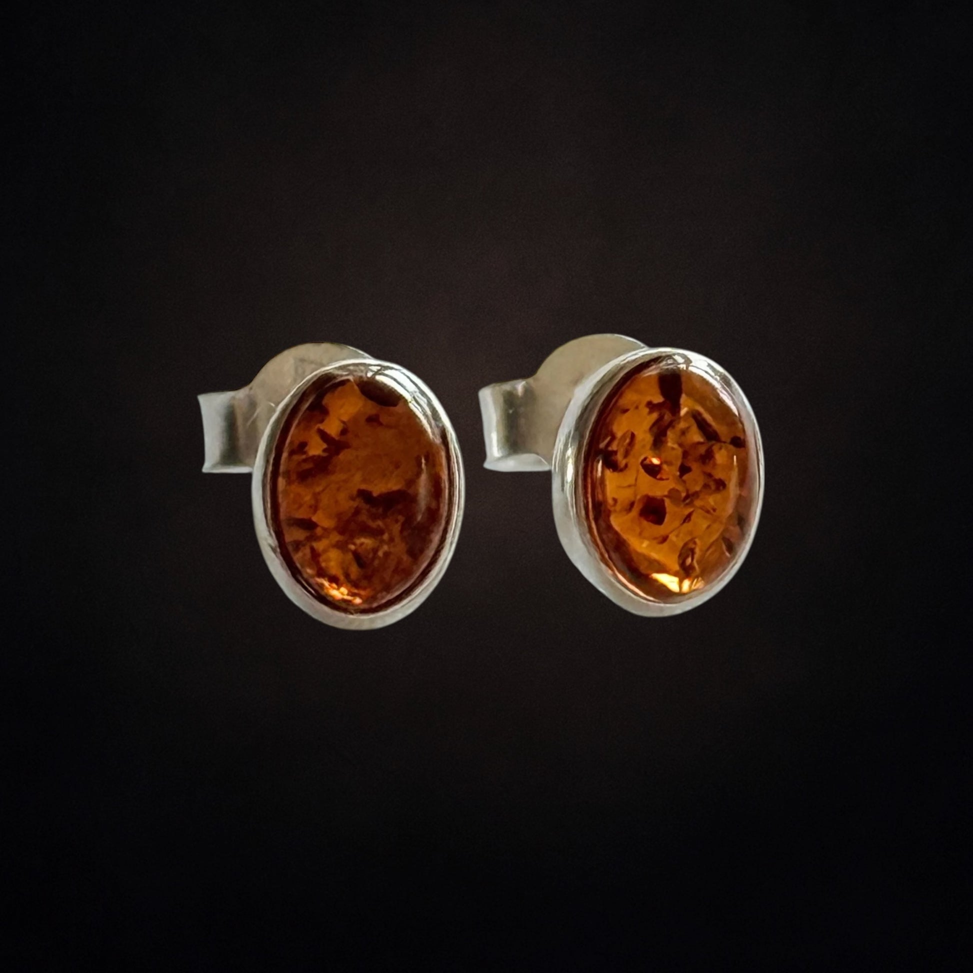 Sterling Silver Baltic Amber Oval Stud Earrings