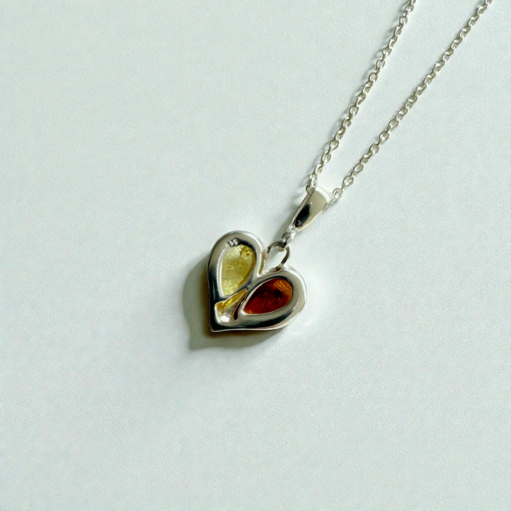 Sterling Silver Baltic Amber Heart Necklace – Yellow & Brown Amber Duo