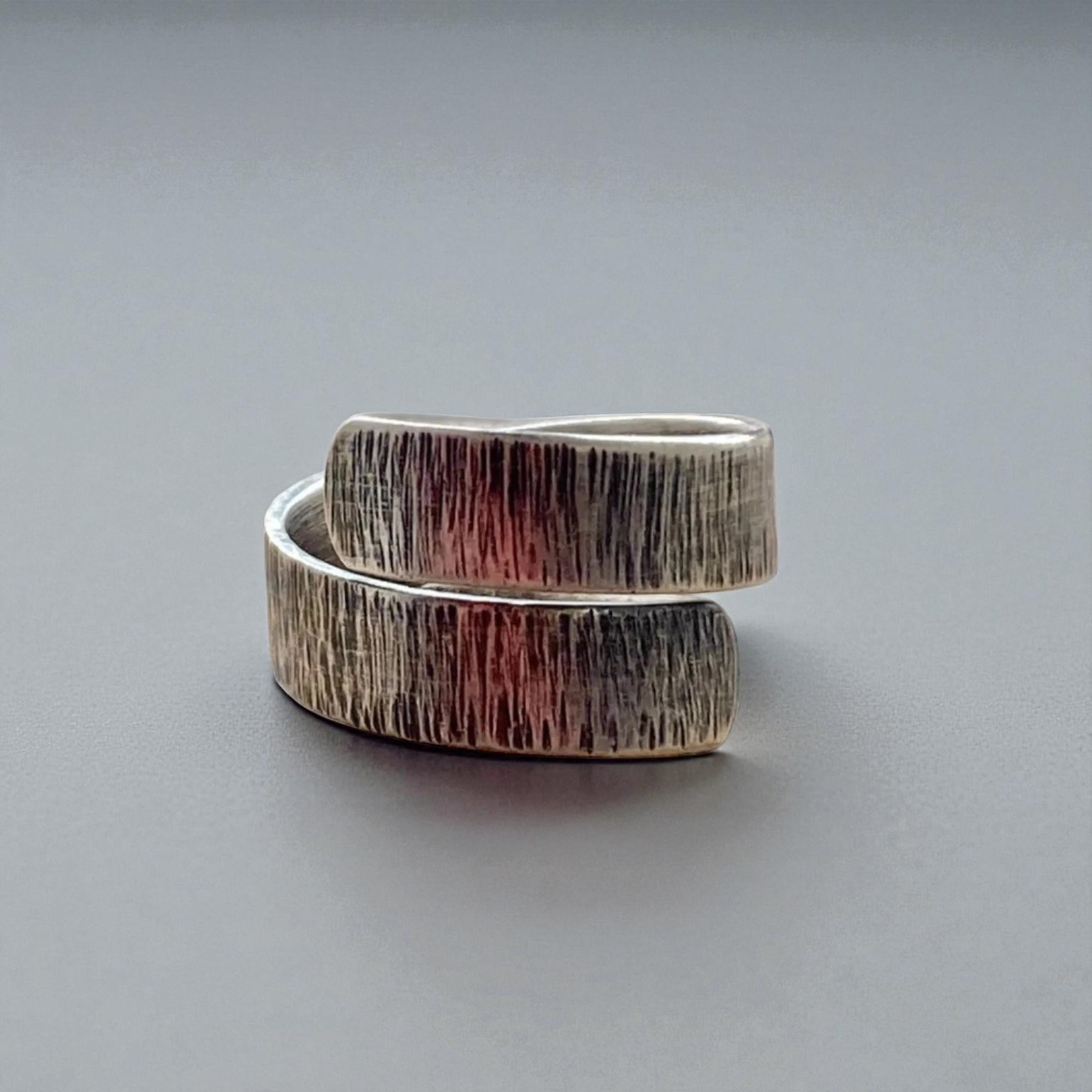 Handmade sterling silver textured adjustable wrap ring. The ring has been hammered for a modern texture. This design is adjustable, in order to tighten gently squeeze the ring and to widen simply pull to open. However, I suggest to specify your correct ring size during the checkout in a note to a seller, so I can adjust the ring for you.