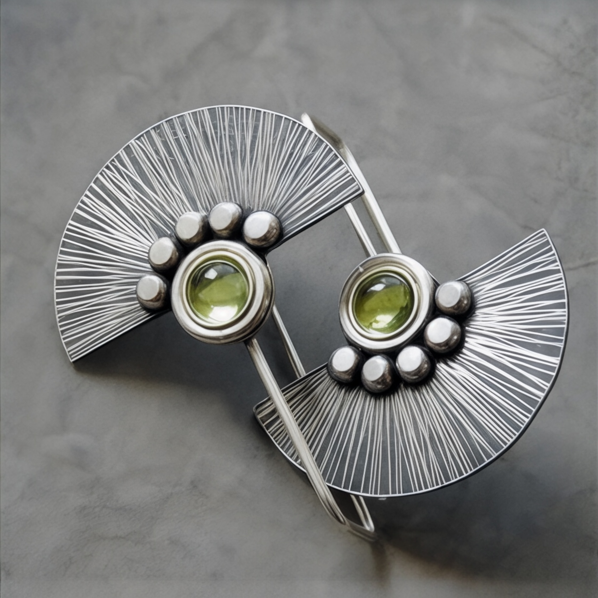 Handcrafted Sterling Silver Fan Earrings with Peridot