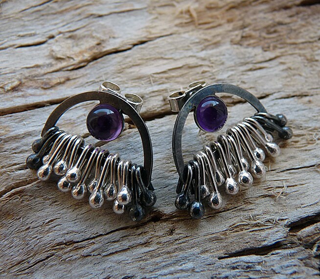 These elegant sterling silver earrings feature a vibrant amethyst, carefully set by hand using traditional silversmithing techniques. Each pair is crafted from solid 925 sterling silver, partially oxidised for depth and contrast, and polished to a bright shine.