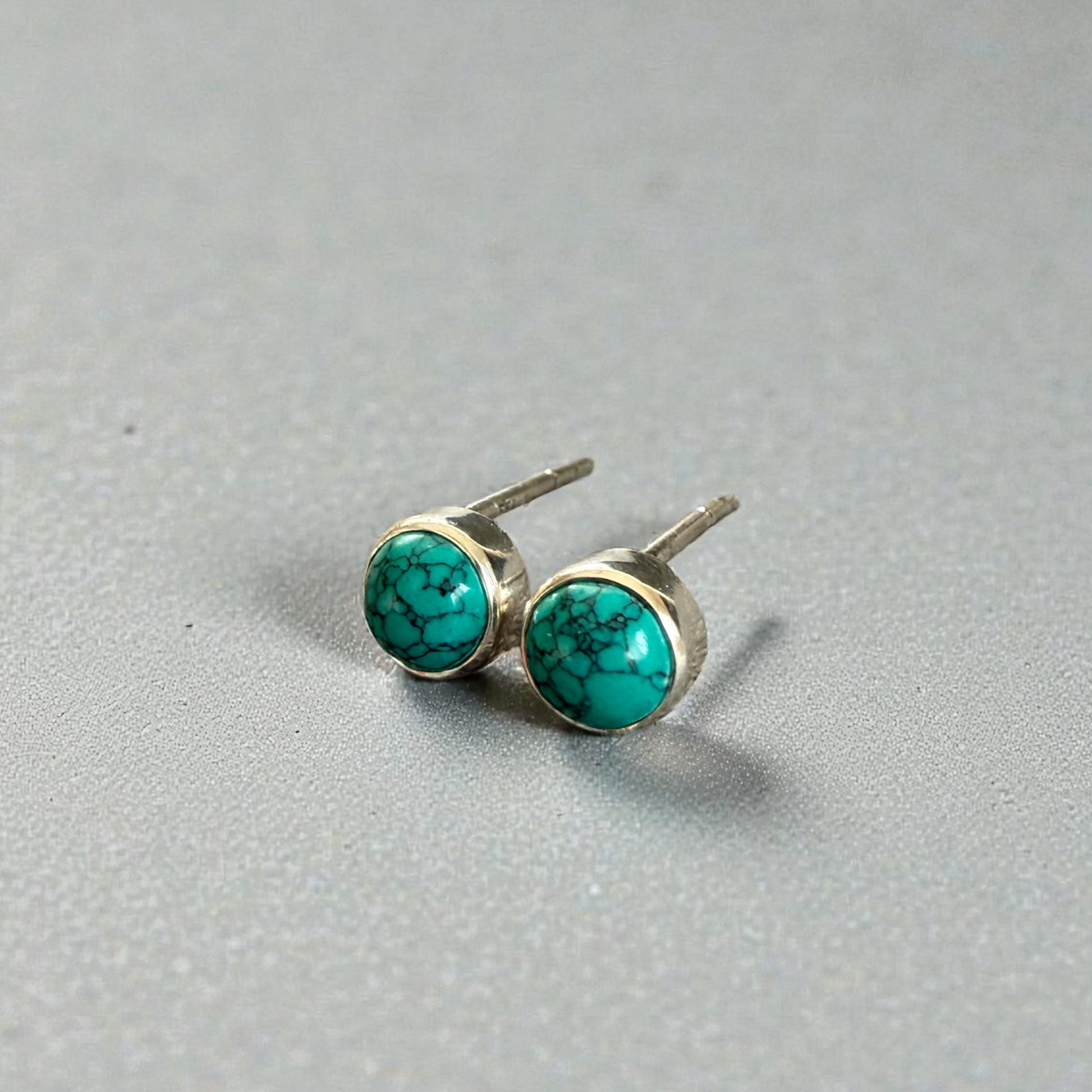 These round stud earrings are handcrafted in 925 sterling silver and set with beautiful natural turquoise gemstones. Each stone features unique veining and natural colour variations, making every pair one of a kind.